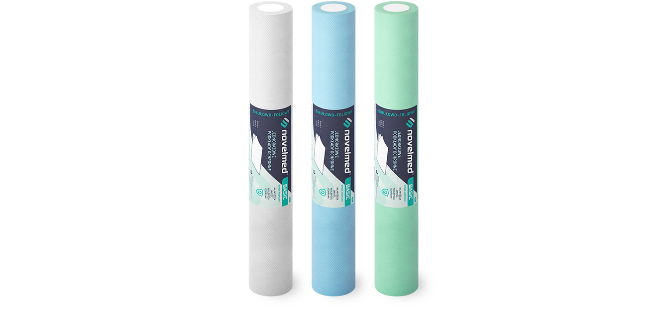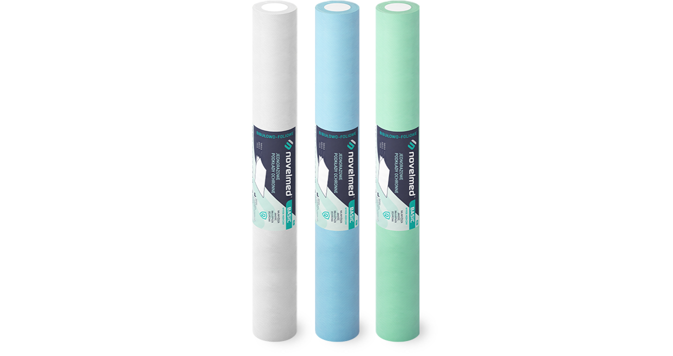 Jednorazowe podkłady ochronne Novelmed® Basic wykonane są z dwóch warstw bibuły higienicznej (100% celulozy) oraz wytrzymałej warstwy folii polietylenowej. Takie połączenie sprawia, że podkład jest nieprzemakalny, nie ślizga się i cechuje go duża wytrzymałość na rozerwania. Podkłady Novelmed Basic są, lekkie, estetyczne, funkcjonalne, uniwersalne i przy tym miękkie w dotyku. Przeznaczone są do stosowania w ochronie pacjenta, mebli, sprzętów i aparatury medycznej przed zanieczyszczeniami.