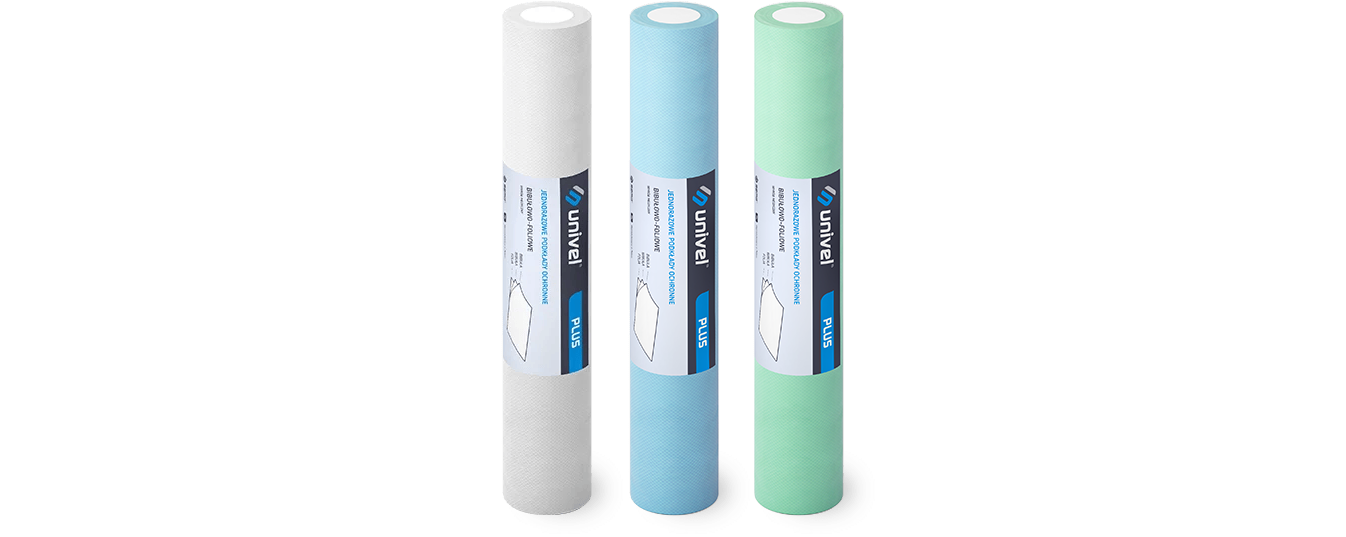 Jednorazowe Podkłady ochronne Univel Plus wykonane są z dwóch warstw bibuły zlaminowanych z jedną warstwą folii ochronnej. Sprawia to, że podkłady są lekkie i miękkie. Posiadają dużą wytrzymałość na rozerwanie i są nieprzemakalne, co zapewnia komfort ich użytkowania.
